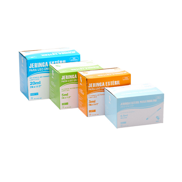 Material: aguja de acero inoxidable con soporte de polipropileno, cilindro y émbolo de PVC grado médico